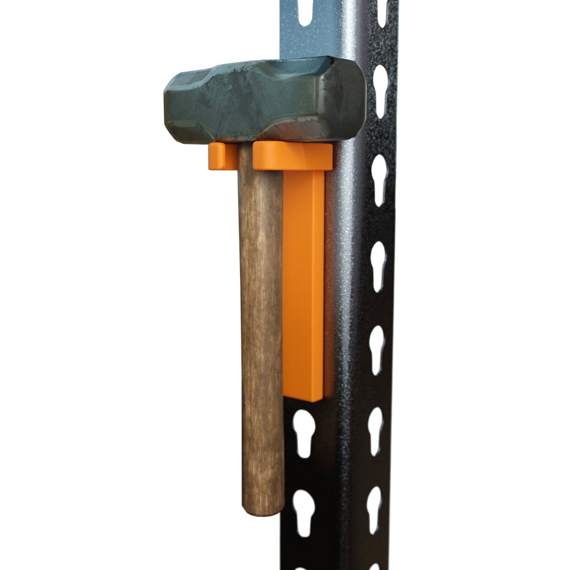 The Sliding Hammer & Mallet Holder can be easily attached to your steel shelving units, allowing you to make better use of space and organize your tools and equipment. Simply hang the hook on the adjustable metal or steel bars and start organizing your workspace.